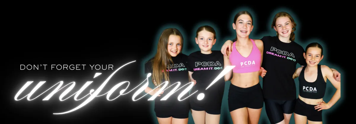 All students are required to wear full PCDA uniform to perform in as well as the correct footwear. This includes changing between routines should uniform demands differ: We have a range of different uniform items available to purchase.